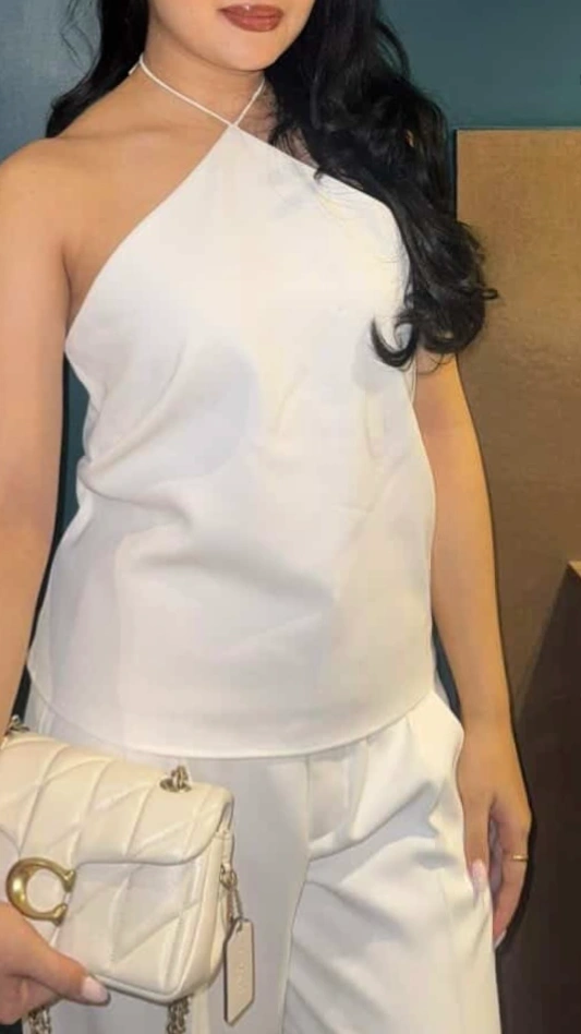A feminine halter top designed with a delicate tie-back detail for an adjustable, flattering fit. The open-back element adds a soft, confident edge while keeping the silhouette clean and refined.