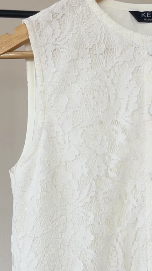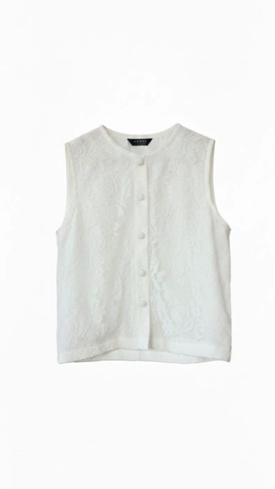 Delicate and timeless, our Lace Vest brings a touch of feminine elegance to any outfit. Its flattering cut and subtle transparency add a sophisticated, romantic charm, transforming simple looks into effortlessly polished ensembles.