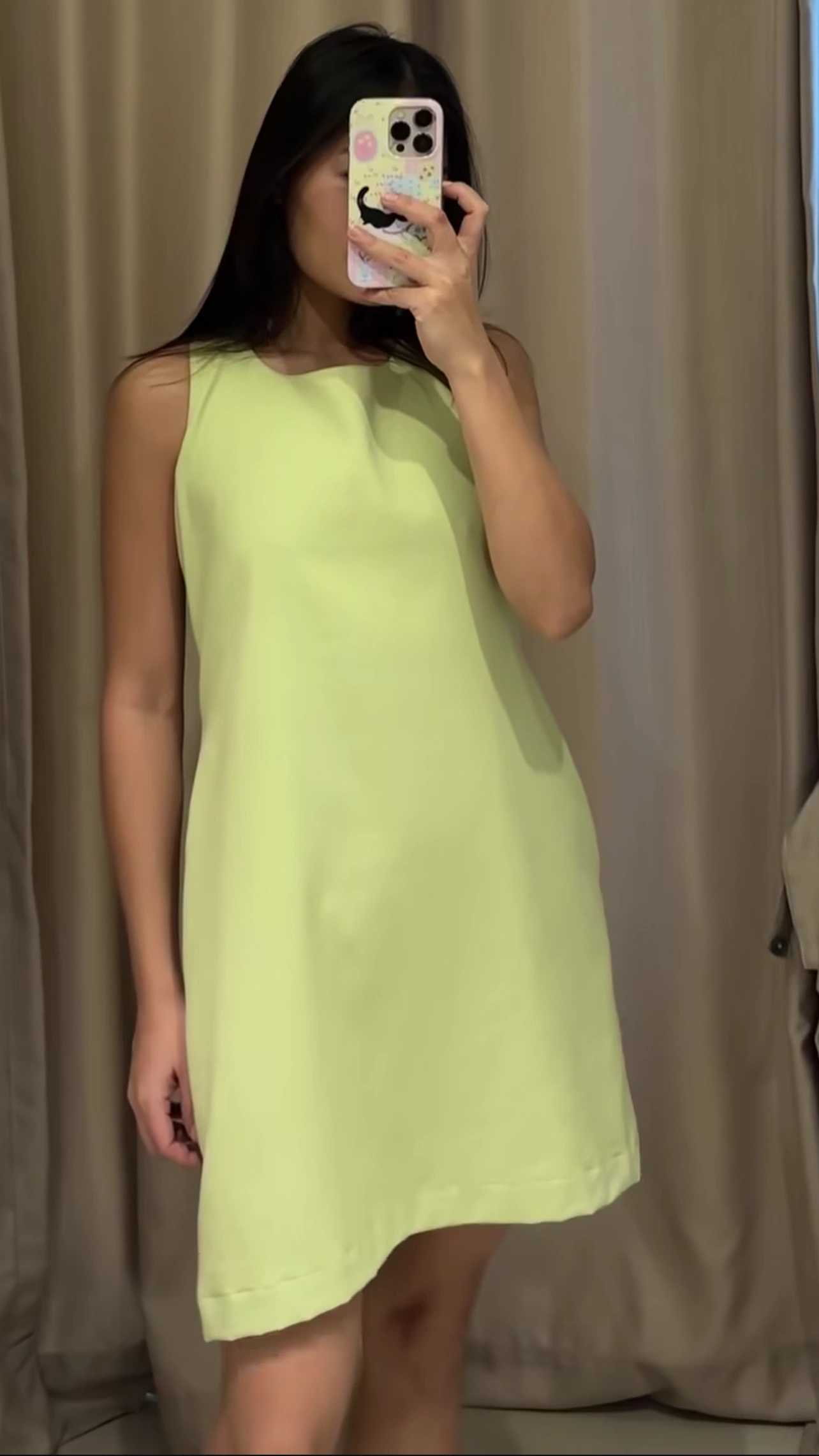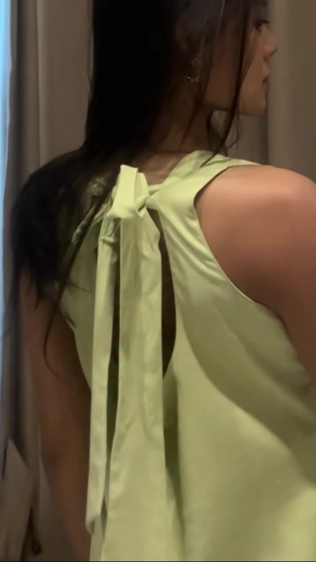 Cut in a flattering sleeveless silhouette, the dress falls to a chic mini length with an easy, feminine shape that moves with you. The open back is finished with an adjustable tie-back bow, adding a delicate, playful touch while allowing for a customizable fit.