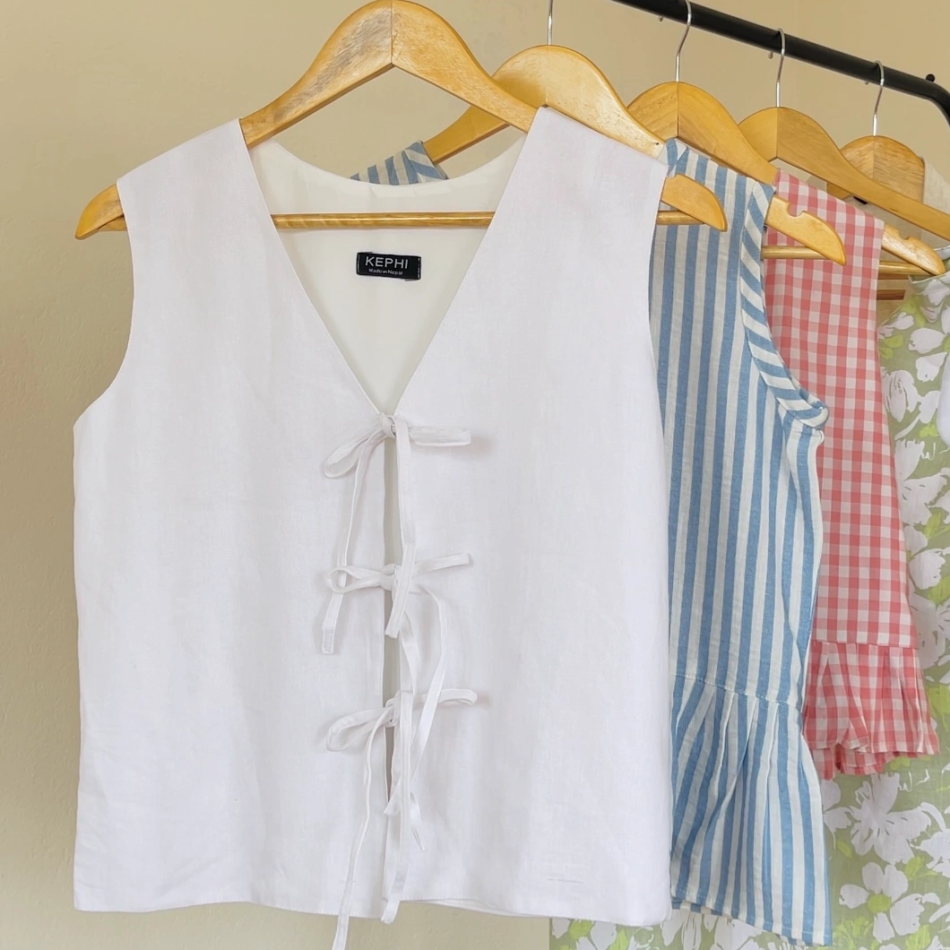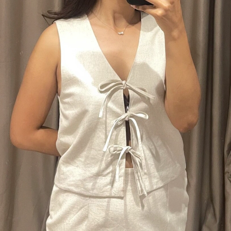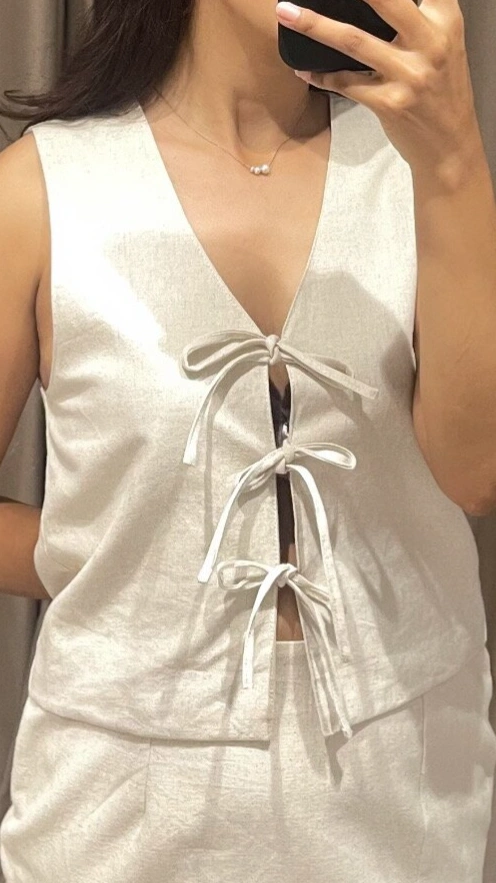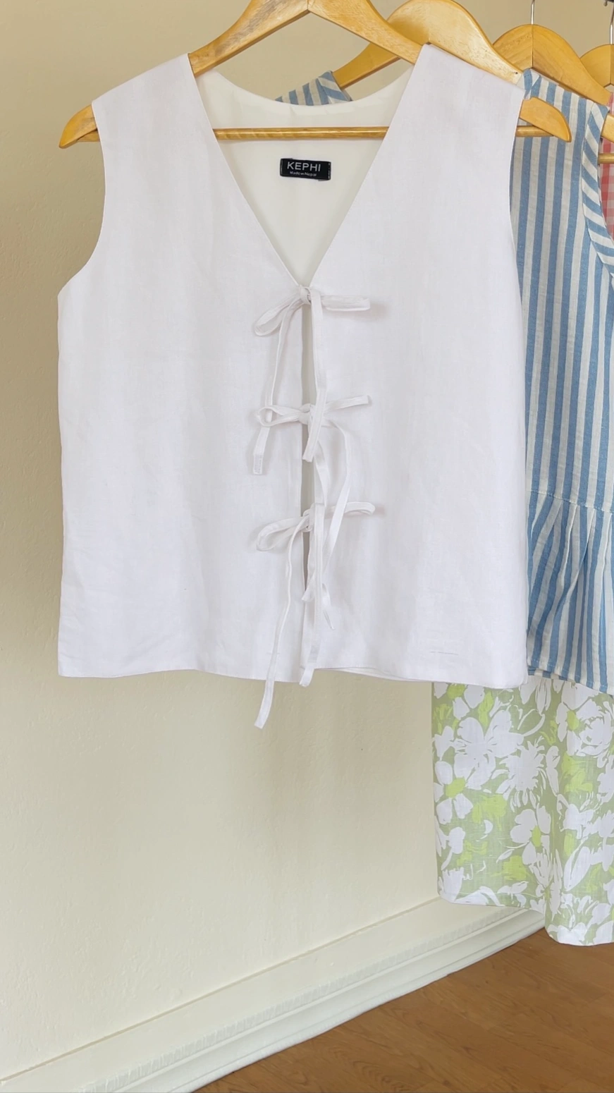 A breezy, feminine top crafted from a soft linen blend. The tie-front detail adds a subtle statement while allowing you to adjust the fit for a flattering silhouette.