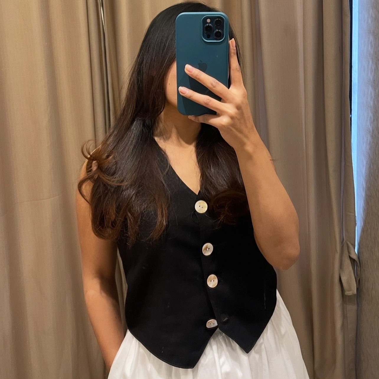 A structured yet breathable linen blend waistcoat tailored for a clean, feminine silhouette. Designed to softly contour the body, it features a flattering fit that feels polished without being restrictive.