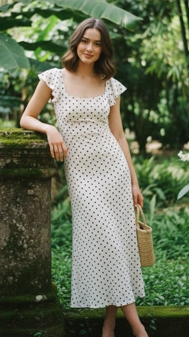 A timeless polka dot dress designed with effortless femininity. Crafted to softly skim the body, it creates a flattering silhouette while maintaining a light, graceful flow. The classic dot print adds a playful yet elegant charm, making it both modern and nostalgic at the same time.
