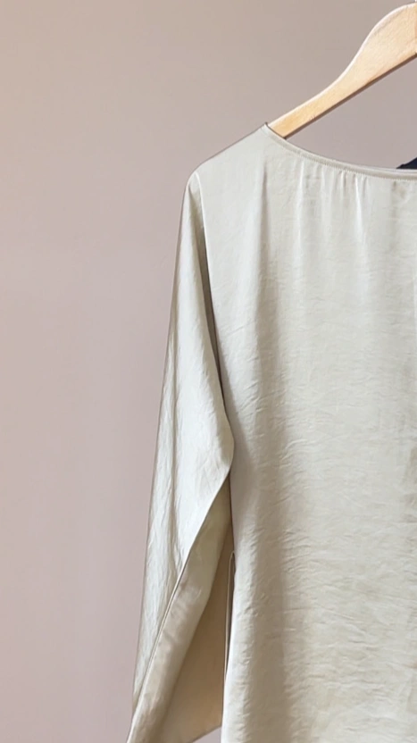 A graceful satin blend top designed to make a soft yet striking statement. The fluid fabric drapes beautifully, giving a subtle sheen that feels refined and elevated.