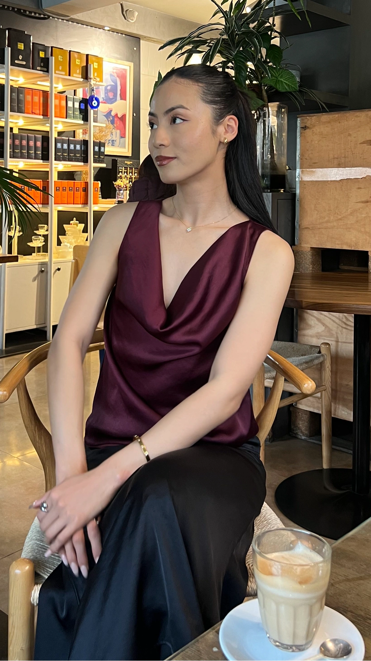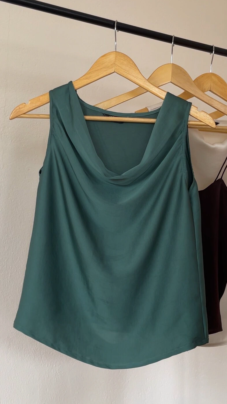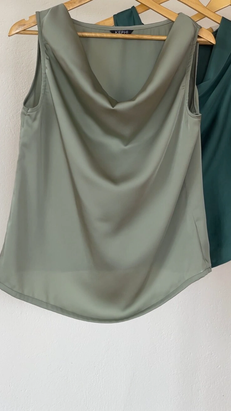 This satin cowl neck sleeveless top is a timeless wardrobe essential that blends elegant simplicity with modern chic. Crafted in luxuriously smooth satin, the top drapes beautifully over the body, giving a soft, fluid silhouette that feels light and effortless.