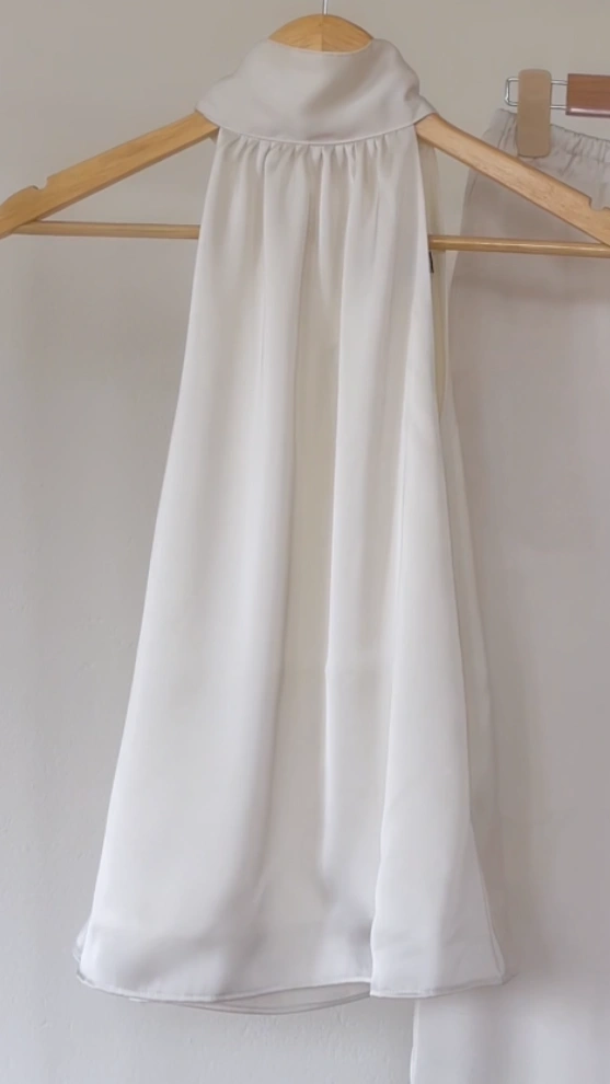 A satin halter neck top crafted in smooth, lustrous fabric that drapes elegantly on the body. Featuring a chic halter neckline and a sleek, sleeveless silhouette, it’s perfect for making a stylish statement. Effortlessly versatile, this top transitions beautifully from daytime sophistication to evening glamour.