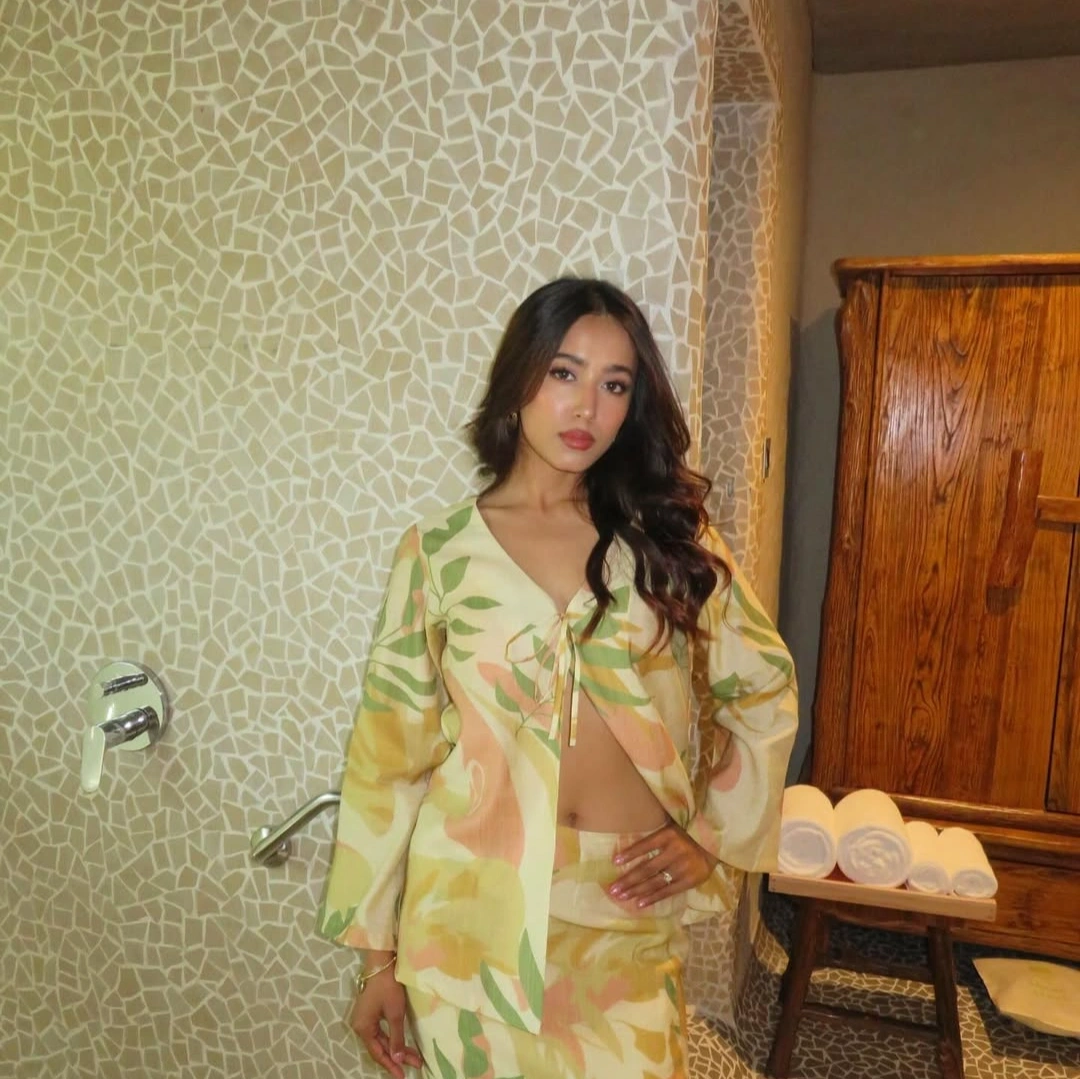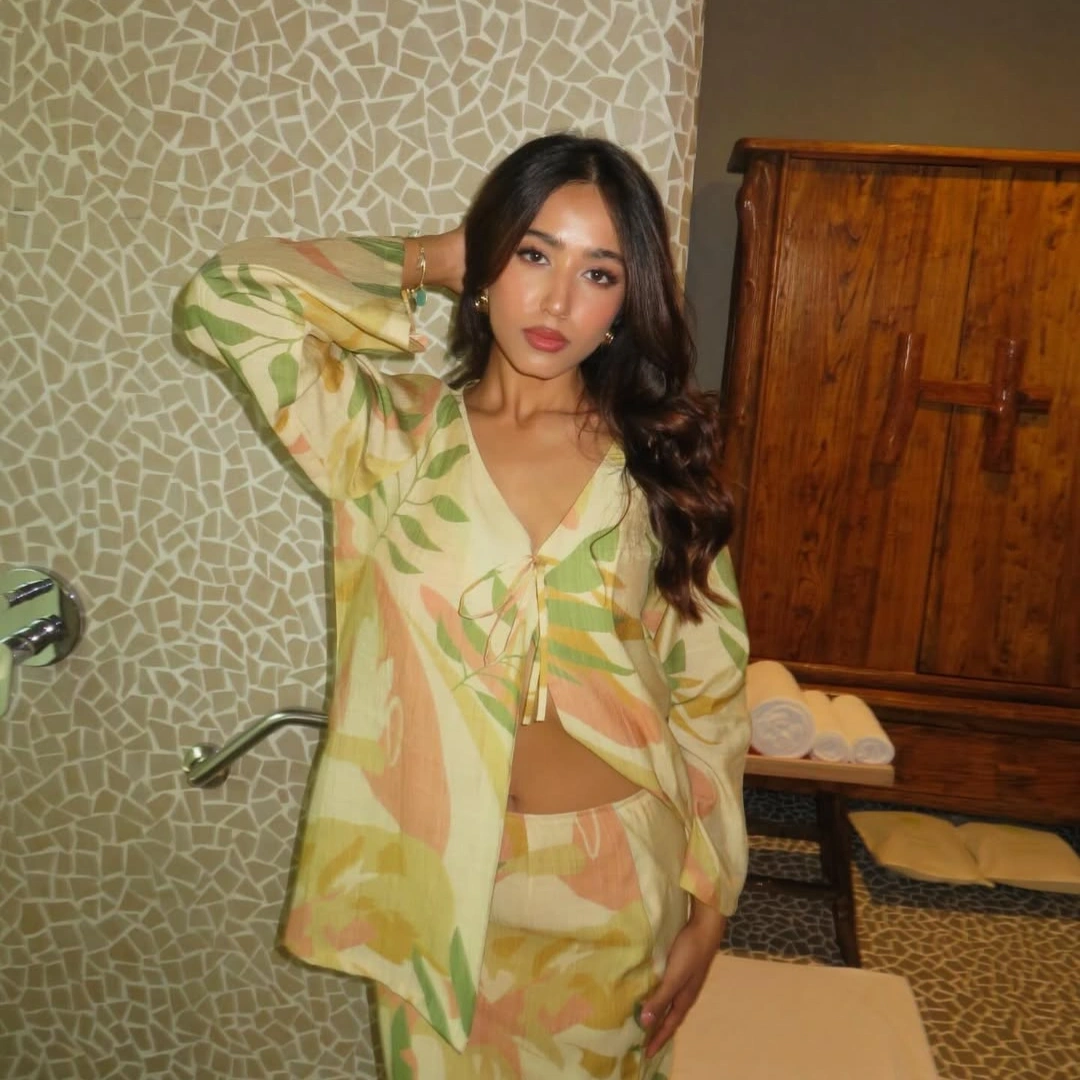 A tie-front full-sleeved top designed for effortless elegance. Crafted in a soft, flowy fabric, it features full sleeves with gentle movement and a flattering tie-front detail that cinches the waist beautifully. Chic and versatile, this piece can be styled for both casual days and polished evening looks.